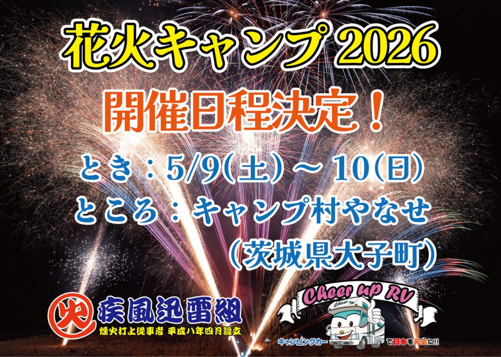 花火キャンプ2026@キャンプ村やなせ、開催日程決定